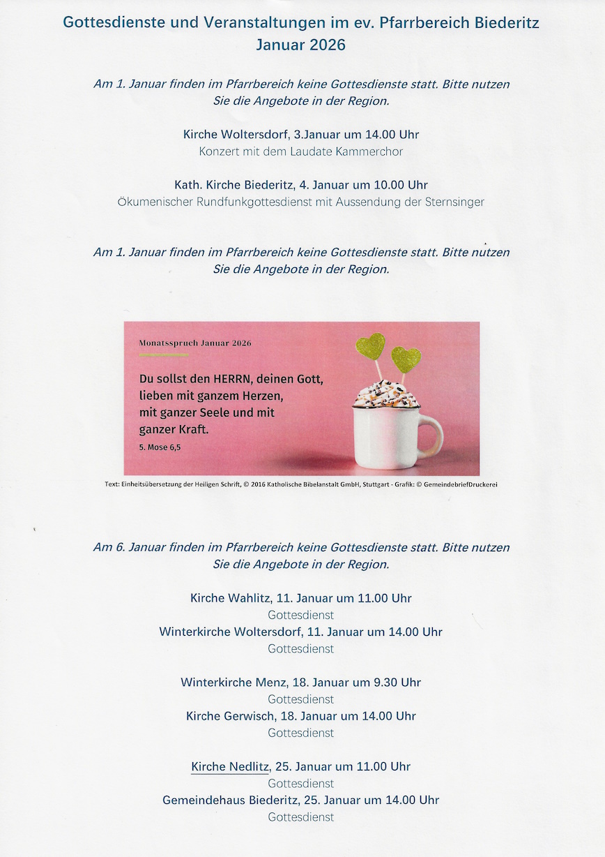 Gottesdienste im Januar 2026