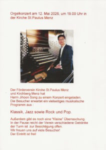 • Herzliche Einladung zum Orgelkonzert nach Menz 22. April 2026